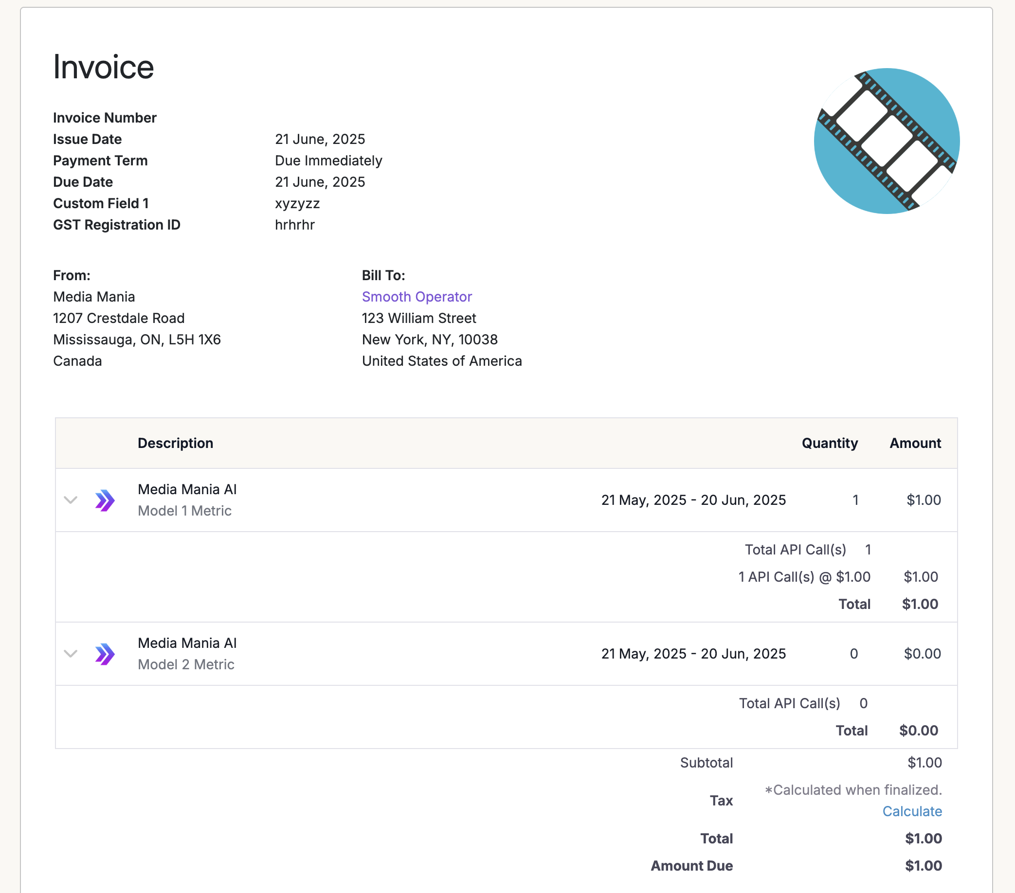 Once the customer and the subscription are set up, you can start tracking usage-events for different types of API calls as and when they happen in your application. Based on the metric we set up earlier, we would be counting API calls for each model type and charging them at a different rate. The billable event takes in a unique customer identifier that maps back to your application along with properties for any metadata that will eventually be used for creating billable metrics. For example, you can use Maple to count the number of API calls made by your customer.transaction_id