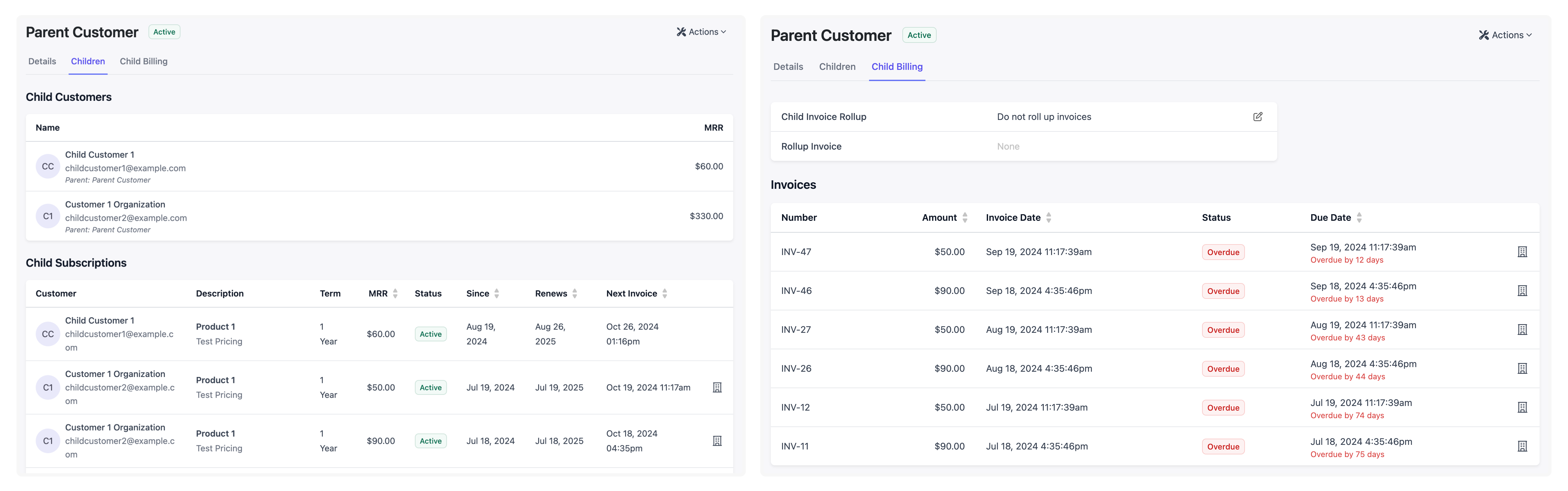 Parent accounts can also be set up in mixed mode, where some children pay for their subscriptions while some may rely on the parent for their billing.Visibility and rollup invoicing