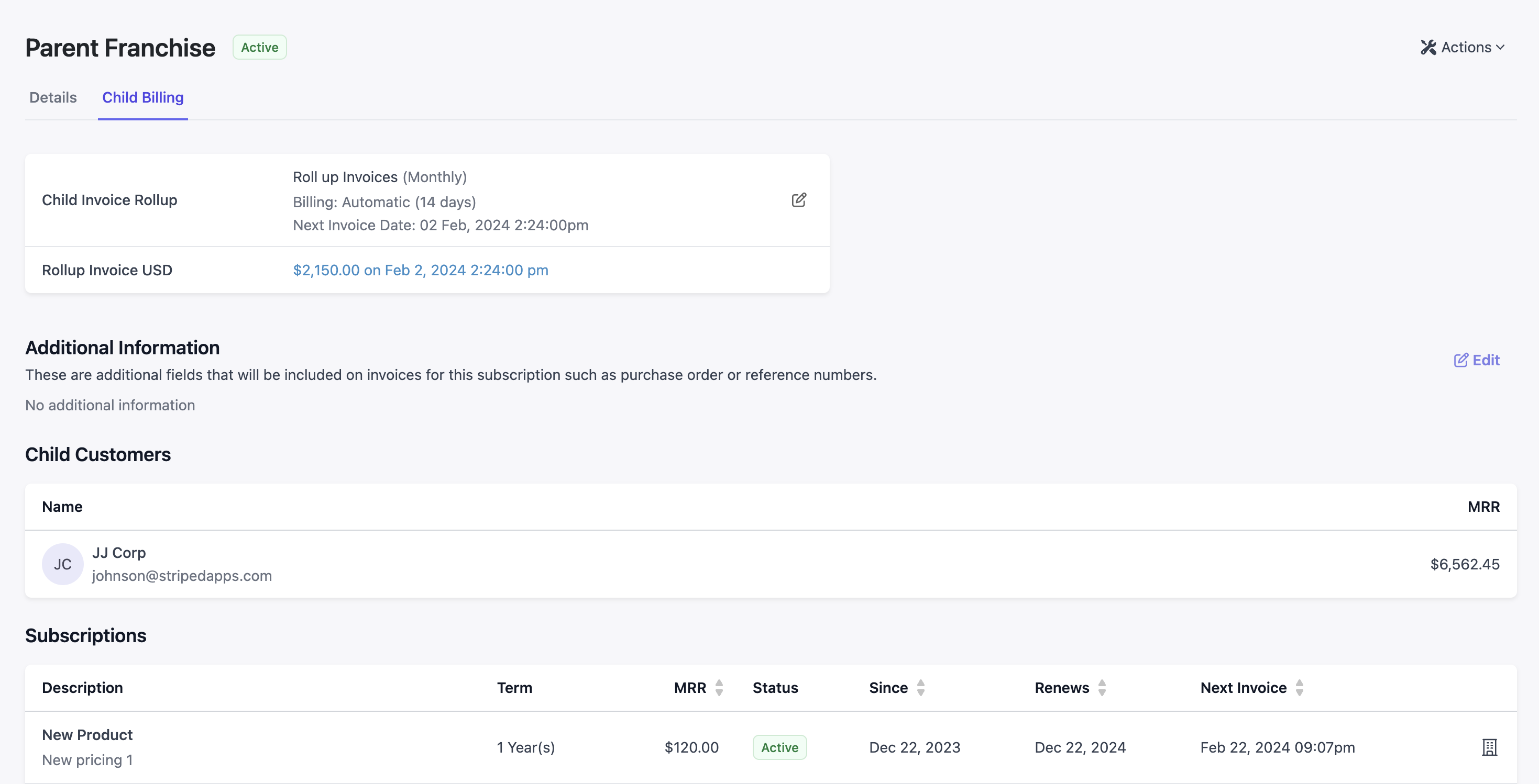 This mode still enables child accounts to control and manage their payment methods, while giving visibility to the parent about subscriptions and invoicing.For instance, a franchise company may want to view the spend of their franchisees.