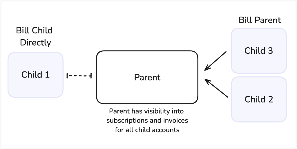 This mode enables child accounts to simply defer to their parent for payments on their invoices.For instance, a University’s IT Department may pay for software even if each department manages their own subscription.