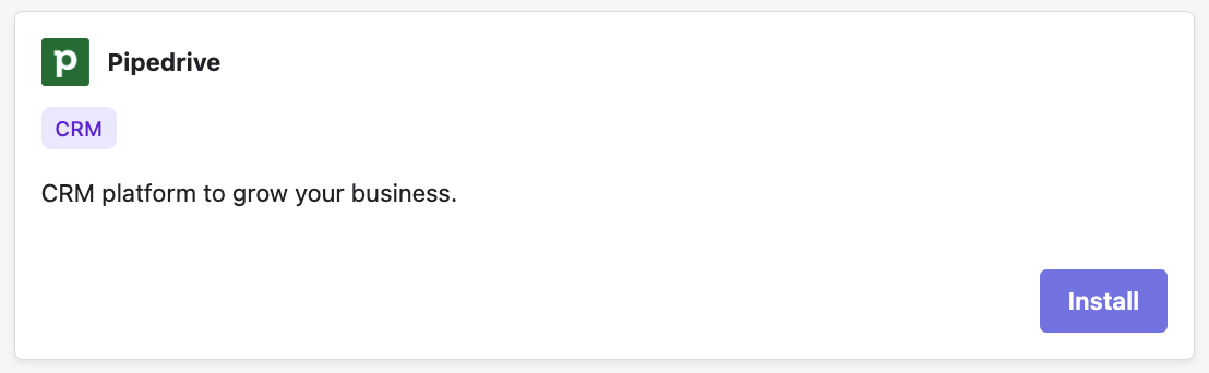 To get started with the Pipedrive integration, select Integrations > Available Apps > Pipedrive