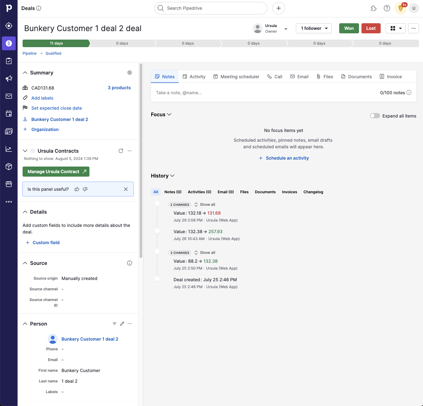 Maple enables your sales team to create Maple contracts from within the Pipedrive deals interface. Once you enable the Pipedrive integration with Maple, you can use the Contracts section to create contracts and view contract statuses.