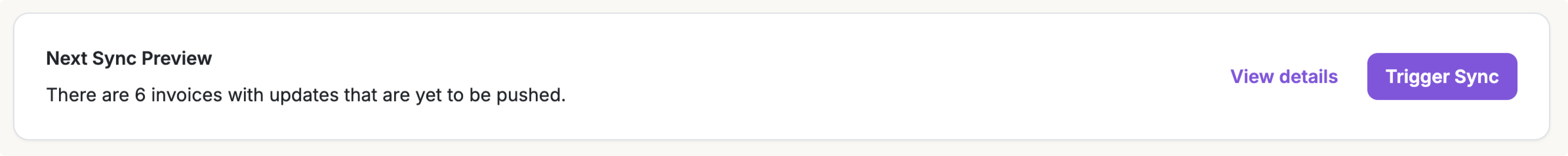 Maple automatically syncs invoices with QBO on a regular cadence but also allows you to manually trigger a sync. You can also see which details for the next sync such as the number of invoices to be synced and their details.