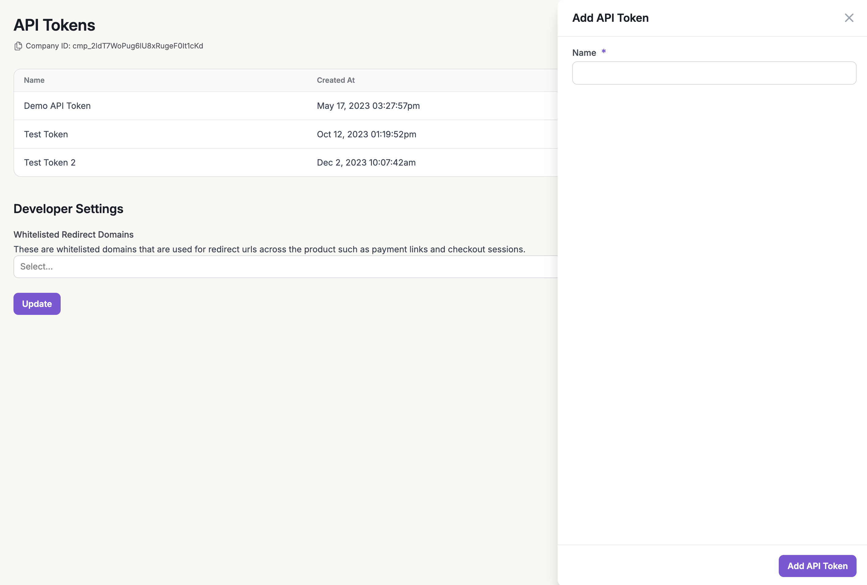 Create an API token from the Maple dasboard under Developers > API Token. The generated token will only be visible to you once.