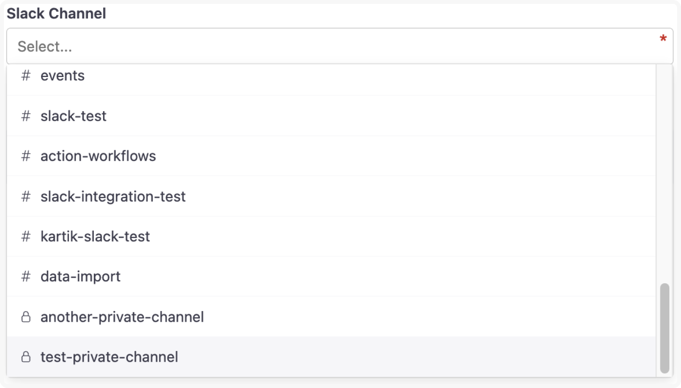 - Private Channels are displayed with a Lock icon and Public Channels are displayed with a Hashtag icon